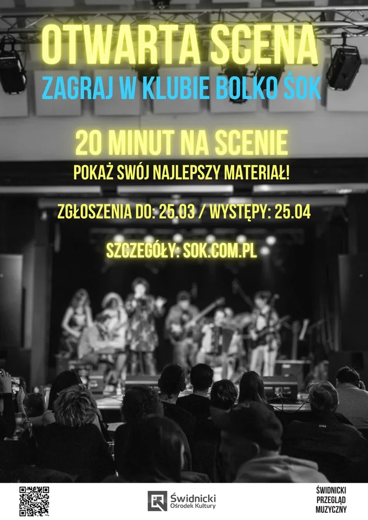 - Do 25 marca - termin zgłoszeń przez formularz na stronie Świdnickiego Ośrodka Kultury - https://sok.com.pl/otwarta-scena-zagraj-w-klubie-bolko-sok/