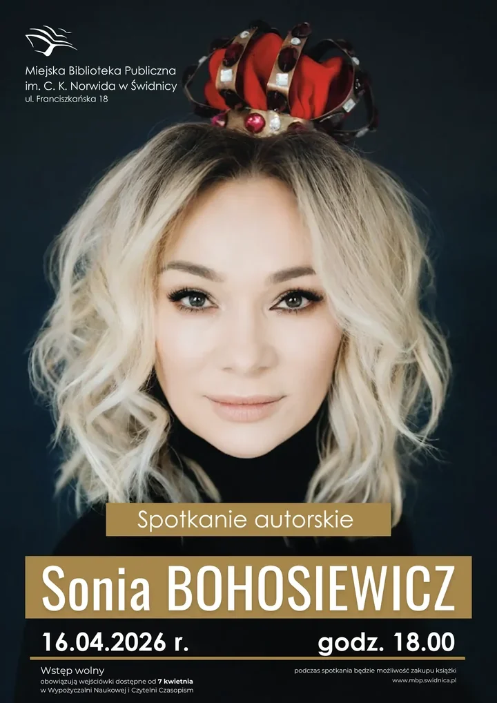 Wejściówki trzeba odebrać od 7 kwietnia w Wypożyczalni Naukowej i Czytelni Czasopism pod numerem 74 640 09 37. To właśnie tam warto się zgłosić, jeśli chce się złapać miejsce na spotkaniu z Sonią Bohosiewicz i spokojnie wejść w ten literacko-sceniczny wieczór.