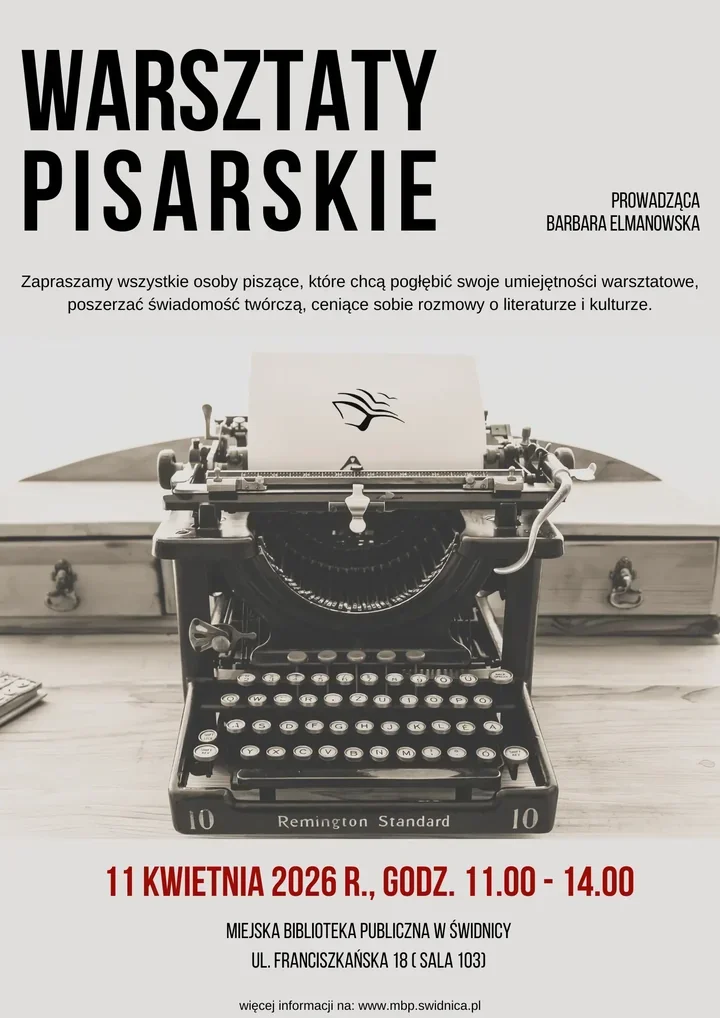 W Miejskiej Bibliotece Publicznej im. Cypriana Kamila Norwida w Świdnicy zapowiada się sobota dla wszystkich, którzy lubią pracować ze słowem. To propozycja dla osób, które chcą uporządkować swoje pisanie, złapać nową energię i wyjść z warsztatów z konkretną inspiracją ✍️