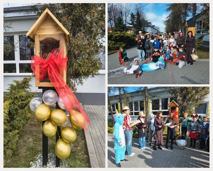 Podczas uroczystości uczniowie wcielili się w postacie z baśni, legend, mitów i szkolnych lektur. Dzięki temu wokół budki zrobiło się barwnie i głośno, a sam pomysł zyskał wyraźnie bardziej uroczysty wymiar niż zwykłe ustawienie skrzynki na książki. Szkolna przestrzeń na chwilę przypominała miejsce, w którym literatura wychodzi z klas i zaczyna żyć własnym życiem.